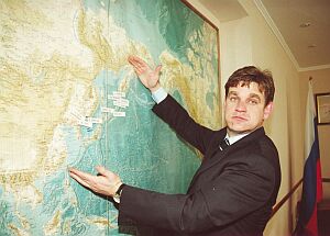 Сергей Дарькин: Люди пошли навстречу, депутаты, это вот как раз перераспределение финансовых бюджетных ресурсов на те статьи, которые должны быть на сто процентов защищены. Тепло, зарплата, коммунальные услуги, стопроцентное закрытие затрат на медицину, максимальное закрытие затрат на образование. То есть, это простые вещи, потому что до этого в бюджете было много очень статей расходов. На самом деле, очень часто, когда те статьи, которые необходимо сто процентов закрывать, например, тепло или зарплаты, их надо платить зарплаты каждый месяц в срок, - то они просто не закрывались. А лоббировались другие статьи, без которых как бы можно обойтись, например, строительство какого-нибудь бассейна, а вместе с тем там не финансировался фонд обязательного медицинского страхования, тем самым не перечисляли деньги в больницы. Тем самым люди, которые там лечились в это время, кормились на 7 рублей в день, на 10 рублей в день. Уже вот сейчас мы на новый год вышли на ситуацию, когда статьи эти защищены. И если мы сравниваем сейчас свое госуправление, например, с Хабаровским краем, то у нас и сейчас уже где-то процентов на 30 мы работаем по численности более эффективно. Даже не проблема в том, сколько людей, а главное в том, на что эти люди сосредоточены. Политизированность как бы управления административного субъекта федерации - в общем-то, я категорически против этого. Михаил Соколов: Шумный скандал вызвало активное вмешательство в избирательную кампанию федерального полпредства. Заместитель полпреда Александр Дроздов заявил, что в Приморье около полусотни кандидатов в депутаты связаны с криминальными структурами. Фамилий он не назвал, предложив журналистам провести свои расследования. У прессы, которую в Приморье вовсю таскают по судам, даже за абсолютно безобидные публикации, желания подставиться не возникло, тем более что многие журналисты уверены, такие заявления - месть хабаровских структур за поражение их ставленника, другого зама полпреда, Геннадия Апанасенко, на летних губернаторских выборах. Глава Приморья Сергей Дарькин принял заявление генерала Дроздова на свой счет. Во время выборов его тоже обвиняли в связях с сомнительными структурами. С обидчиками он продолжает судиться. Дарькин создал комиссию по борьбе с черным PR-ом и стал горячиться. И тут губернатор, конечно, подставился. Депутат краевой Думы Сергей Соловьев заметил, что есть факты, требующие немедленной реакции. Сергей Соловьев: Заявление полпреда Пуликовского и его сотрудников, что более 50 человек связаны с криминалом, тревожит. Потом - тишина, провал, списков никаких не обнародовано. Приезжает член Совета Федерации Манилов, говорит: "Да нет, никто не связан с мафией". Но мы-то знаем и можем перечислить несколько имен и фамилий, когда люди средь бела дня заходили в кабинет к руководителю краевого масштаба и избивали его в своем кабинете. Председатель спорткомитета бывший, Чикин, был избит одним из кандидатов (фамилия его Николаев Владимир, кличка - "Винни-Пух") прямо в кабинете. Мы знаем, что этот же персонаж зашел к другому. К лесопромышленнику. Я не обсуждаю достоинства одного и второго, но он среди бела дня прострелил ногу и ушел. Да, он посидел там три-четыре месяца в СИЗО, да? Это что, не криминал? Мы что, все такие здесь живем? Нет. Михаил Соколов: Баллотируется? Сергей Соловье